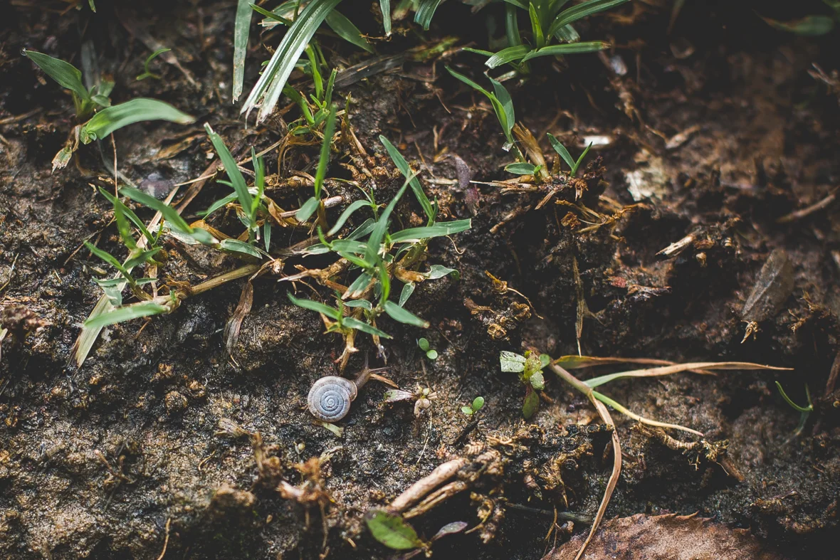 My favorite image of his from today was of this snail. It was one of those itty-bitty snails and it was sliding through a small, muddy patch in someone's landscaping. How Sam saw it I don't know. He has that radar for all things creepy-crawly that little boys seem to possess.