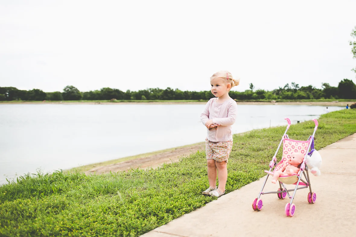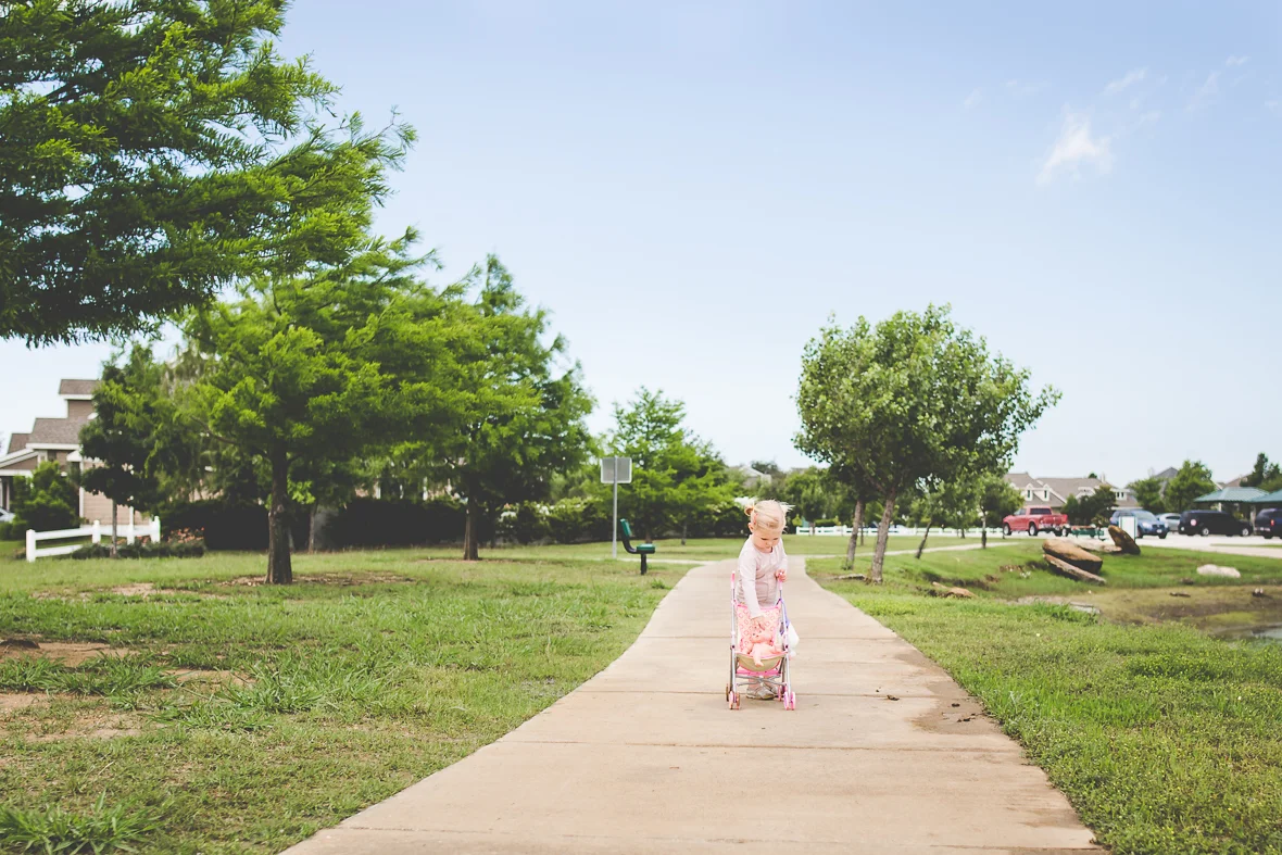 So off we went, Evie with her baby, baby stroller, and bunny purse filled with baby's bottles, and Sam and I with our cameras, bending over taking photos of grass, puddles and concrete. I'm sure we looked like quite the crew walking through the neighborhood!