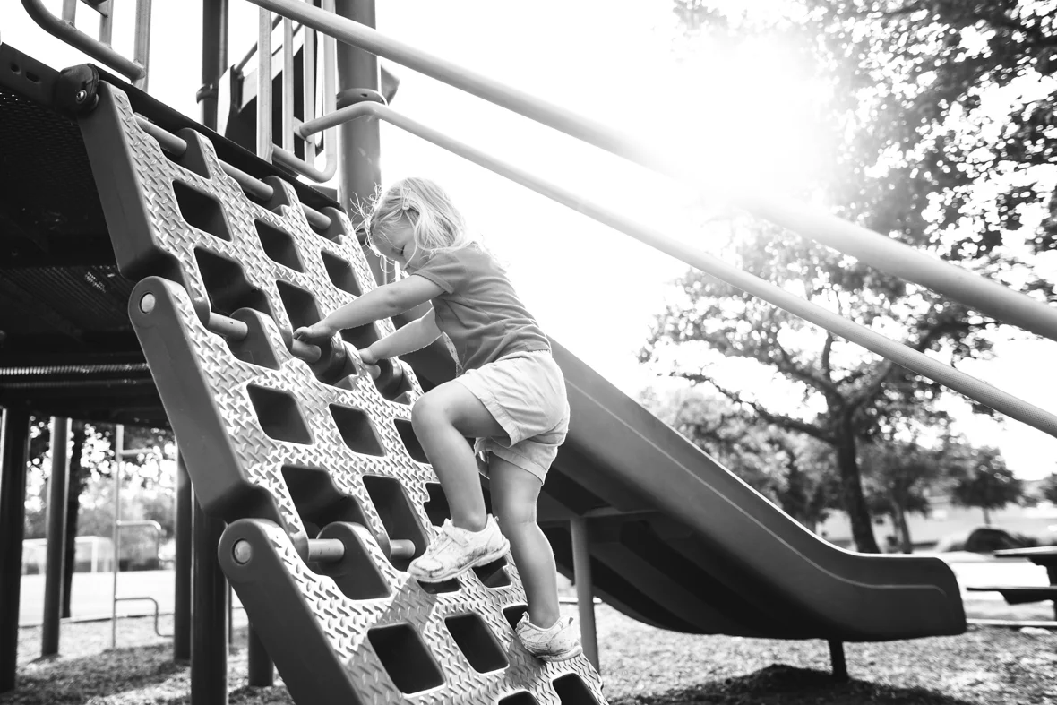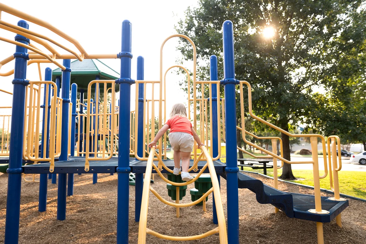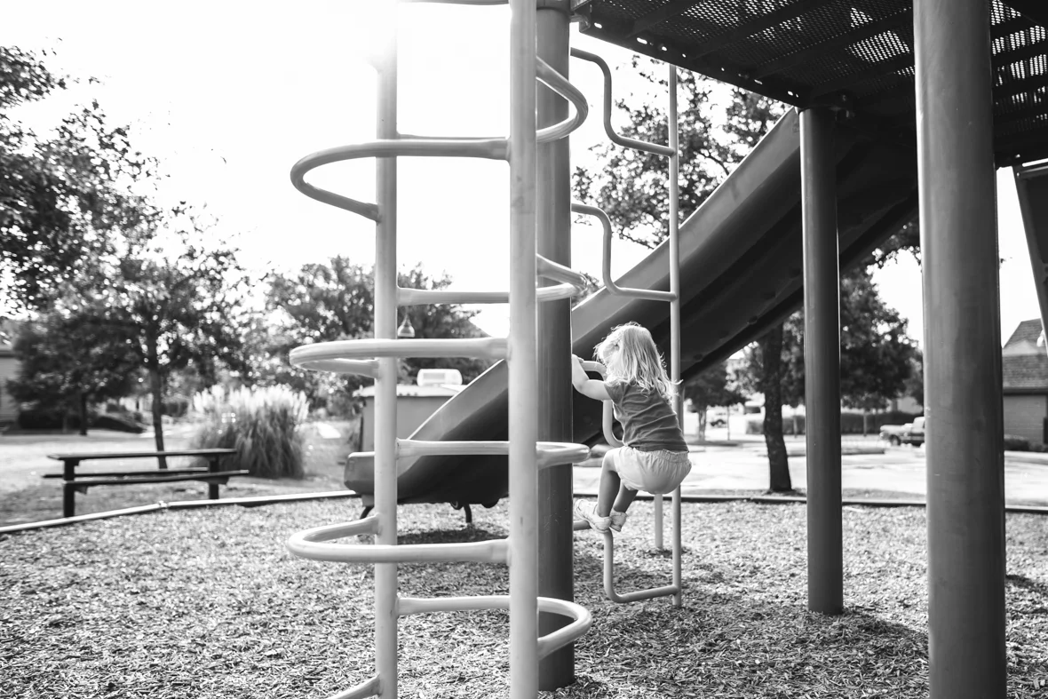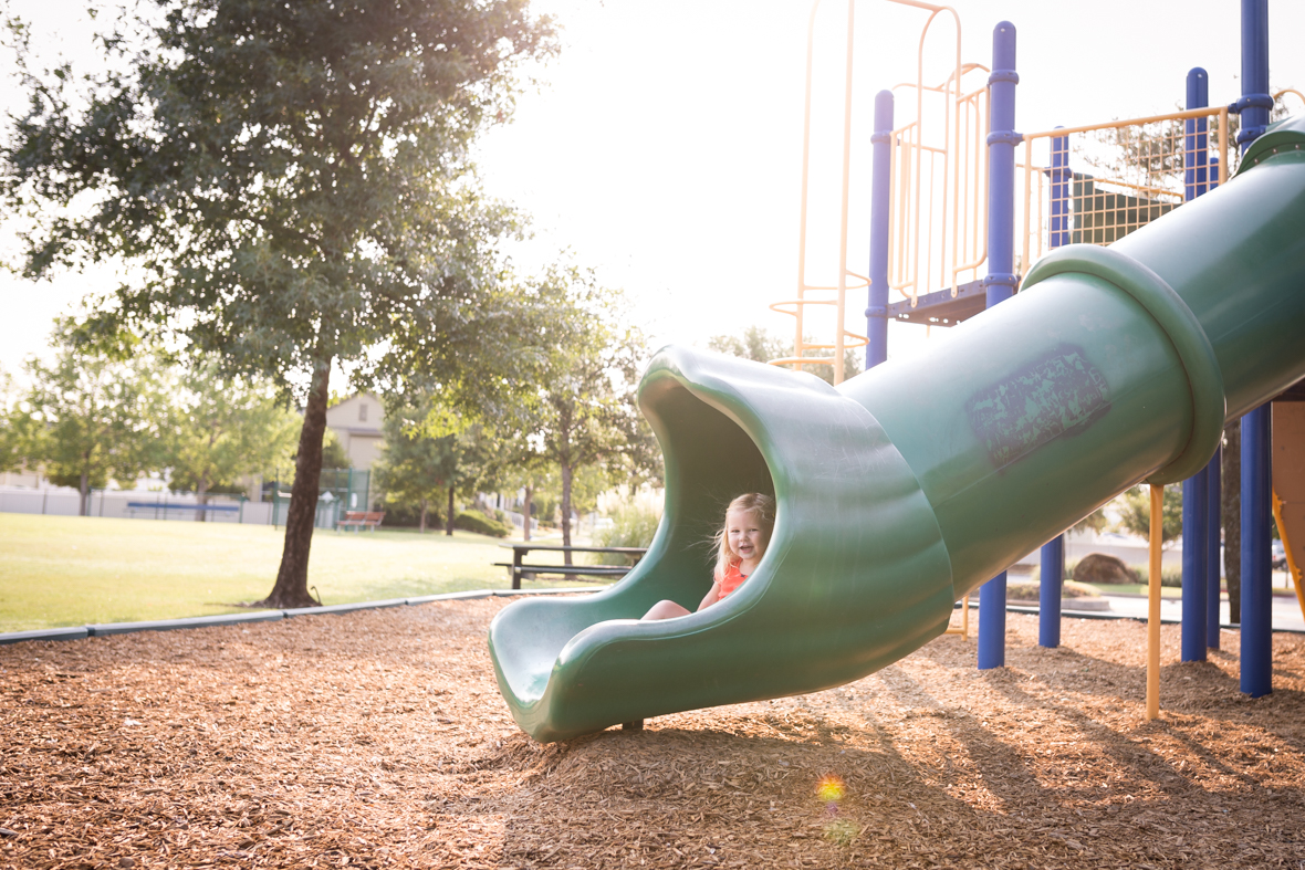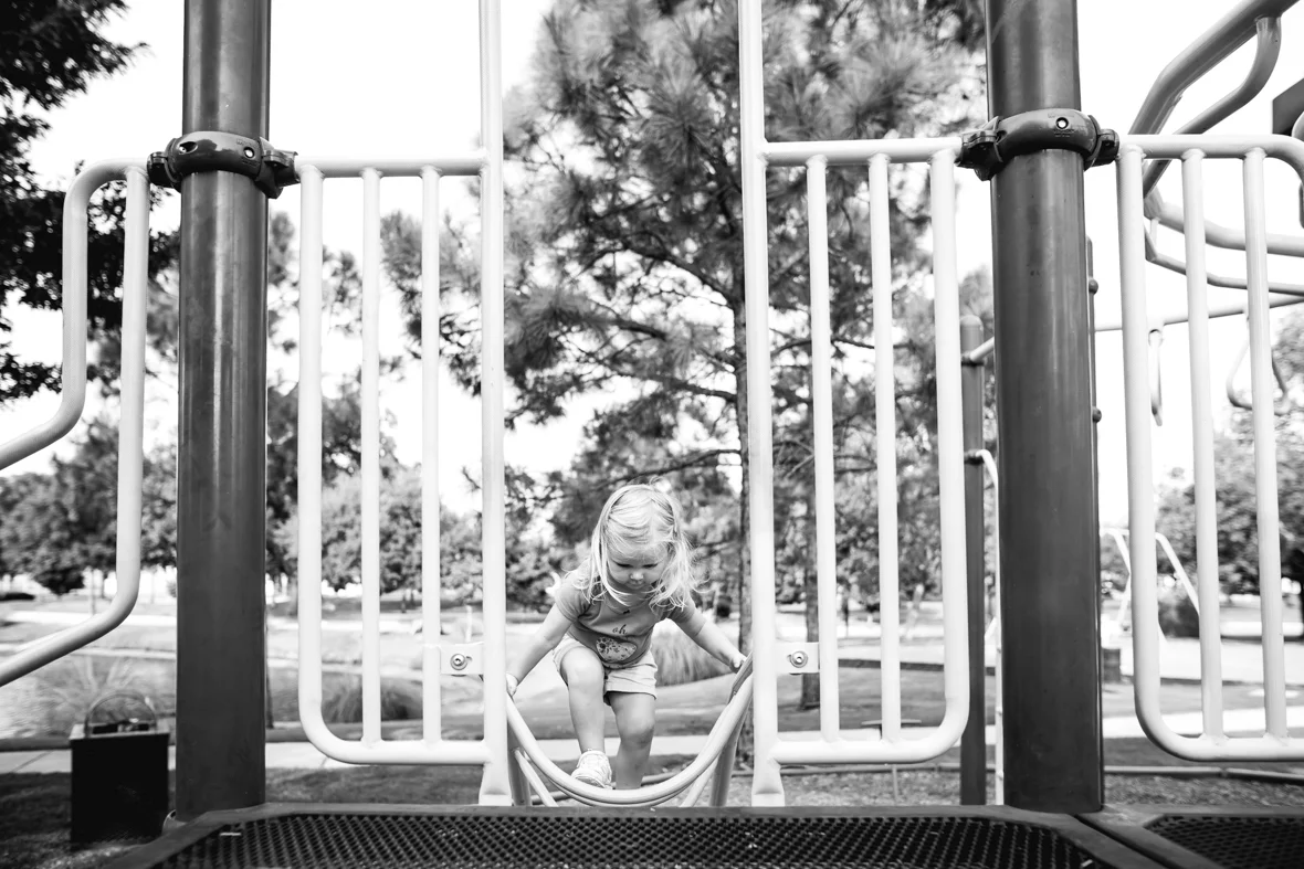 After taking Sam to school today, Evie and I decided to hit the playground for a while before the heat set in. She can do things on this playground at two-and-a-half years old that Sam didn't try for a least a couple years past that age. She's strong and adventurous and quite the risk-taker. And cute, too!
