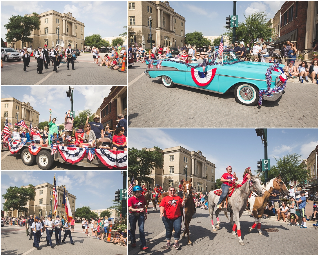 On the actual 4th of July Brian and I took the kids to downtown McKinney to see the parade. We've been several times and it's always a fun morning. We had a great spot this year and there were some very patriotic floats to enjoy. I was very happy there was a marching band this time. Patriotic music was the icing on America's birthday cake! An ice cream and iced coffee treat from our favorite shop The Sweet Spot made for a yummy end to a sweet morning! Happy Birthday, America!