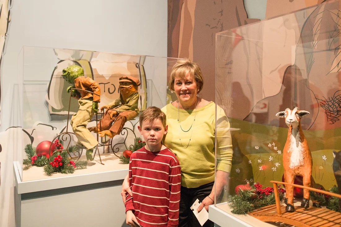 Gram and Sam had to have a picture in front of the characters of one of their favorite stories, Frog and Toad. I think one of the Billy Goats Gruff photobombed their picture!
