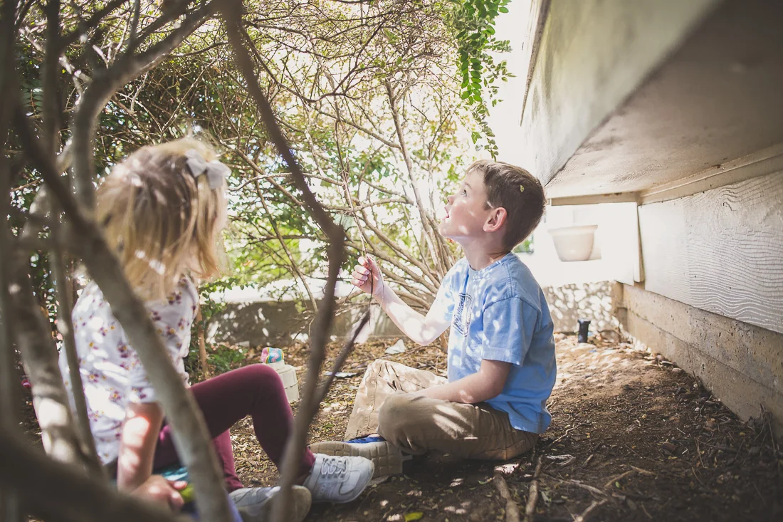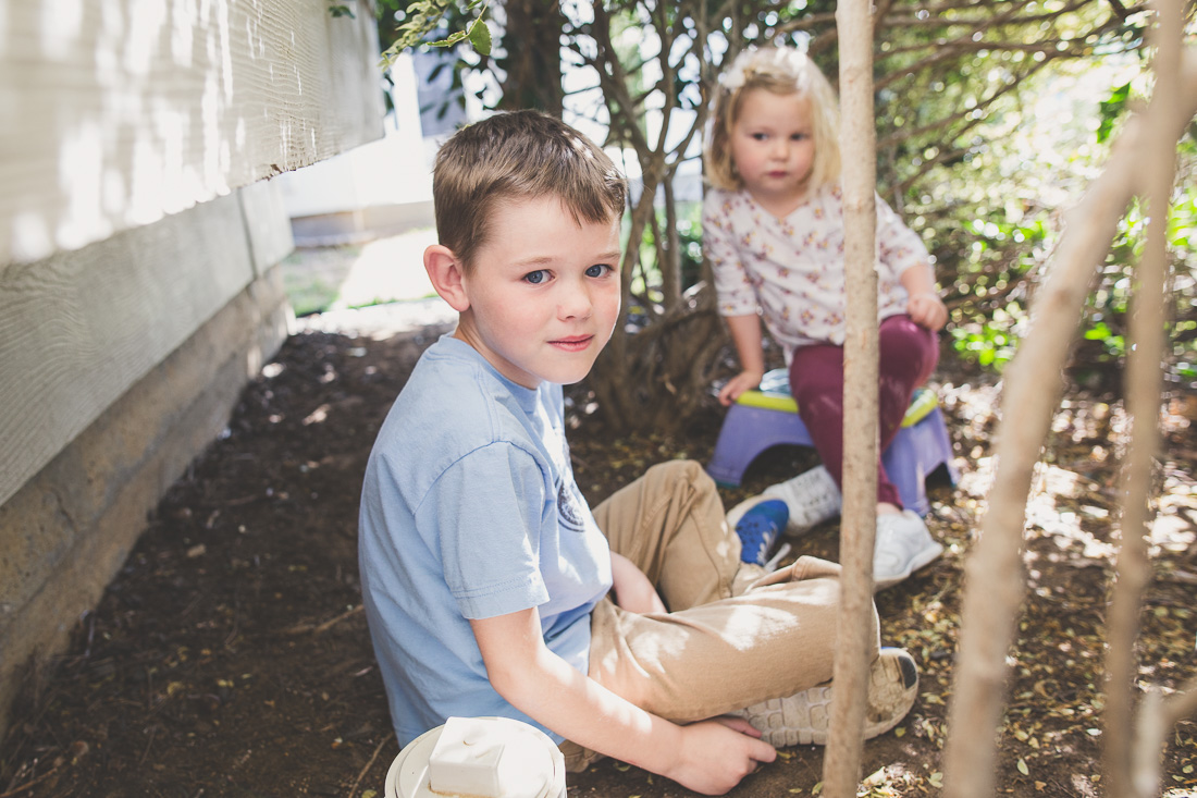 Sam has found the perfect place for a hideout - under our front privet bush. Sometimes he stays under there alone, often times he and his neighborhood friends are hanging out in it. Sam even made a sign for it: "Bush-Sweet-Bush". Never thought when a parent came by looking for their child I'd say, "Yeah, their here. They're in the bush".