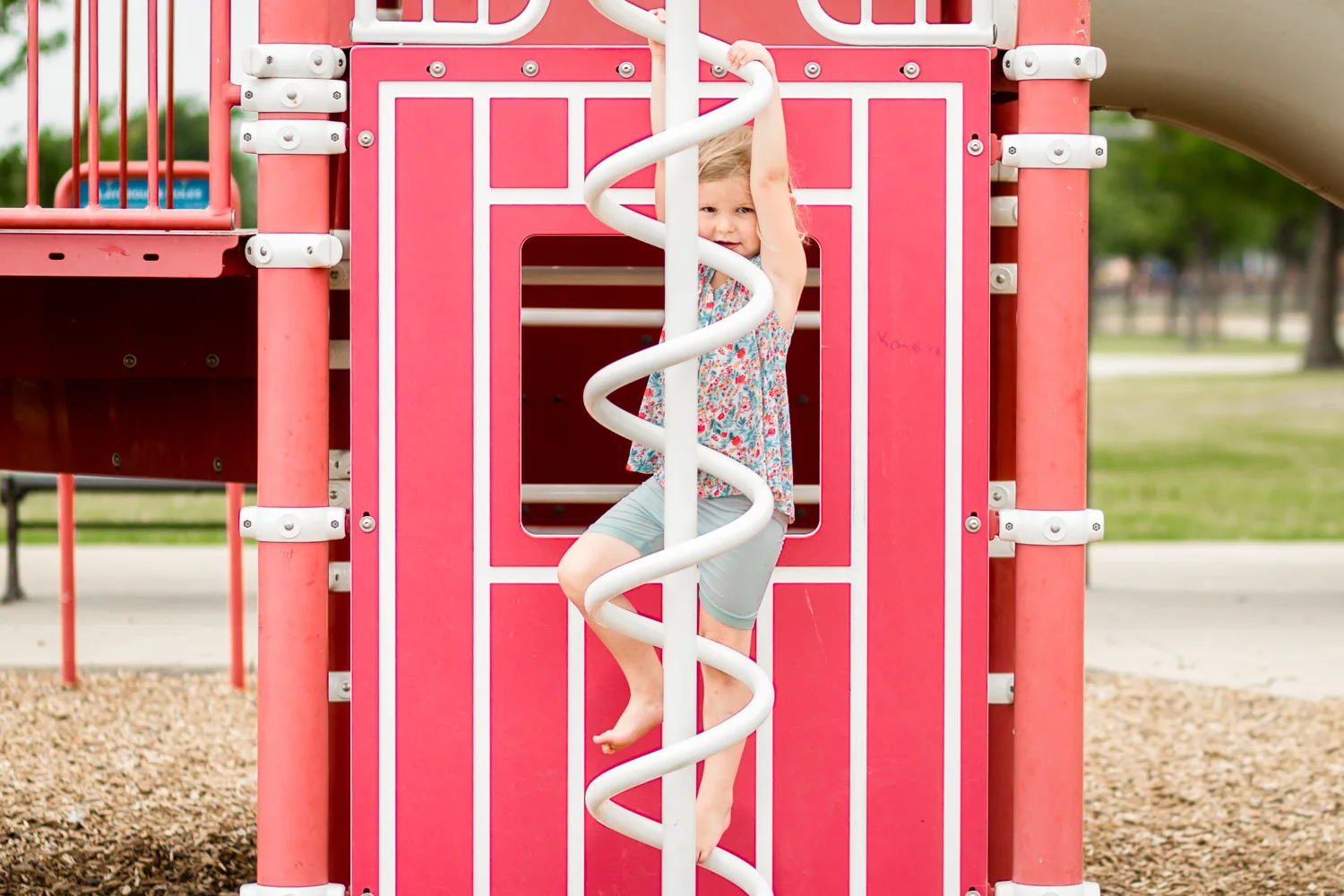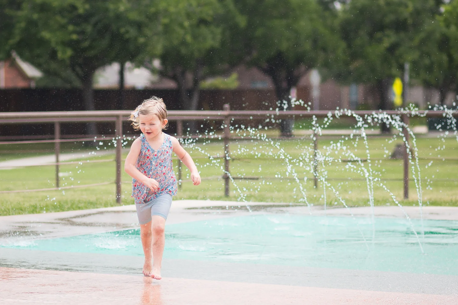 There's a playground by the gym that has a playground...with a SPLASH PAD!! We weren't prepared for the splash pad to be on when we stopped by on this particular day, so splashing in clothes it was!