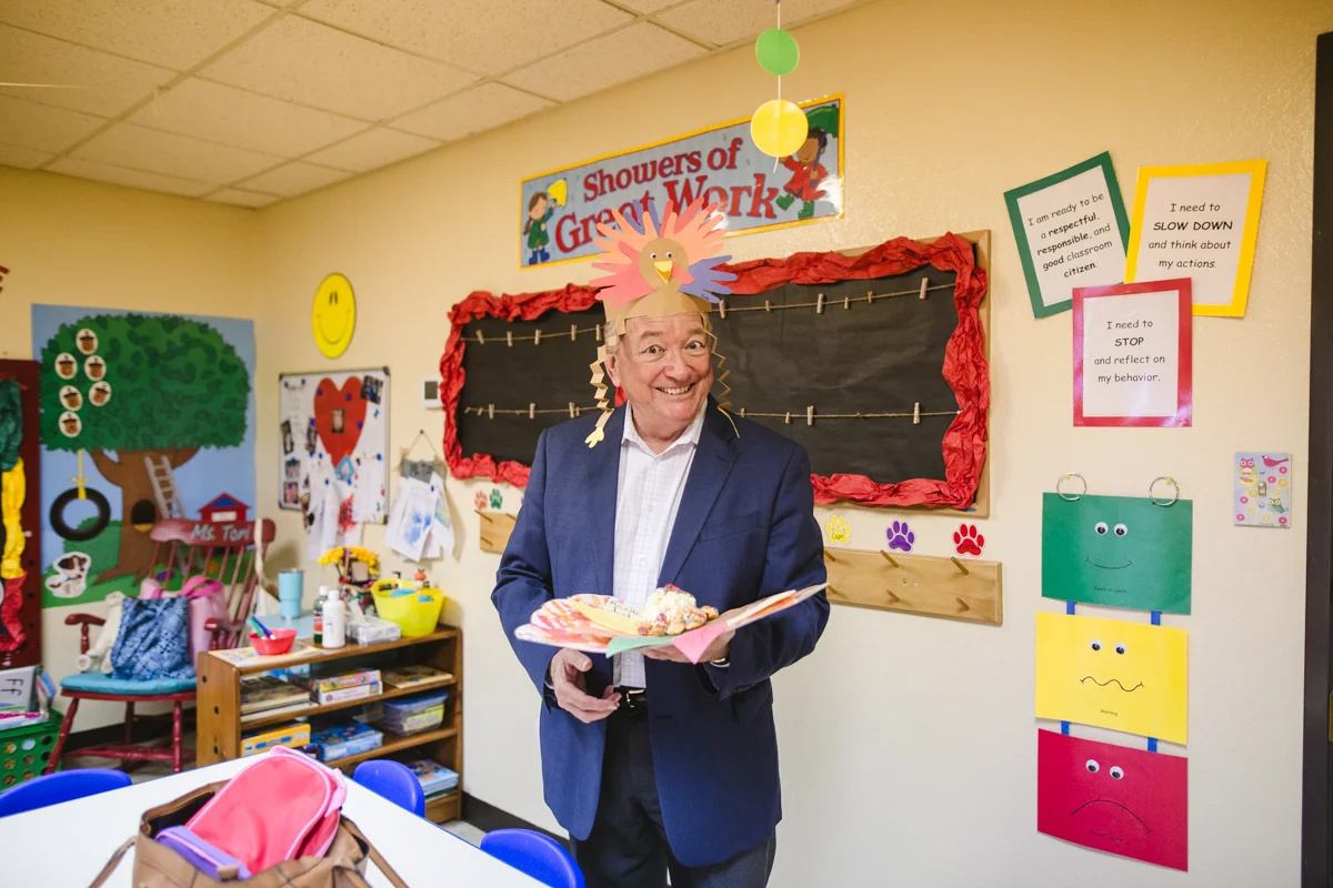 Evie's sweet preschool hosted an awesome Thanksgiving potluck for the kids and their families. Since Gram came with us on our pumpkin patch field trip, we invited Pops to join us for the potluck meal. The kids performed a couple of songs and then we all ate some home-cooked, Thanksgiving food. Yum!