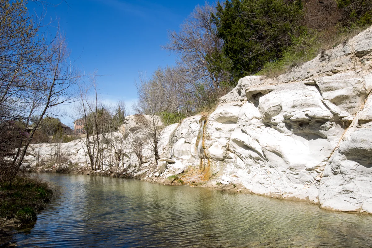 After our car-picnic and some time on the playground, we ventured down to the part of the West Rowlett Creek that flows through Limestone Quarry Park. The kids had fun skipping rocks, or in Evie's case, chucking huge rocks into the creek to see the splash and hear the "plunk" sounds they made when they hit the water.