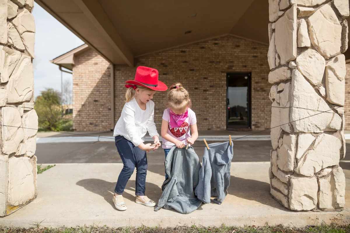 Yee-haw! Farm Day in PreK was lots of fun! We pet some farm animals, milked a pretend cow, sheared a pretend sheep, and touched some worms. We learned what a clothesline is and practiced hanging up some of Ms. Toni's clothes, lassoed a plastic steer, and played with the pretend campfire. Being a country girl is hard work!