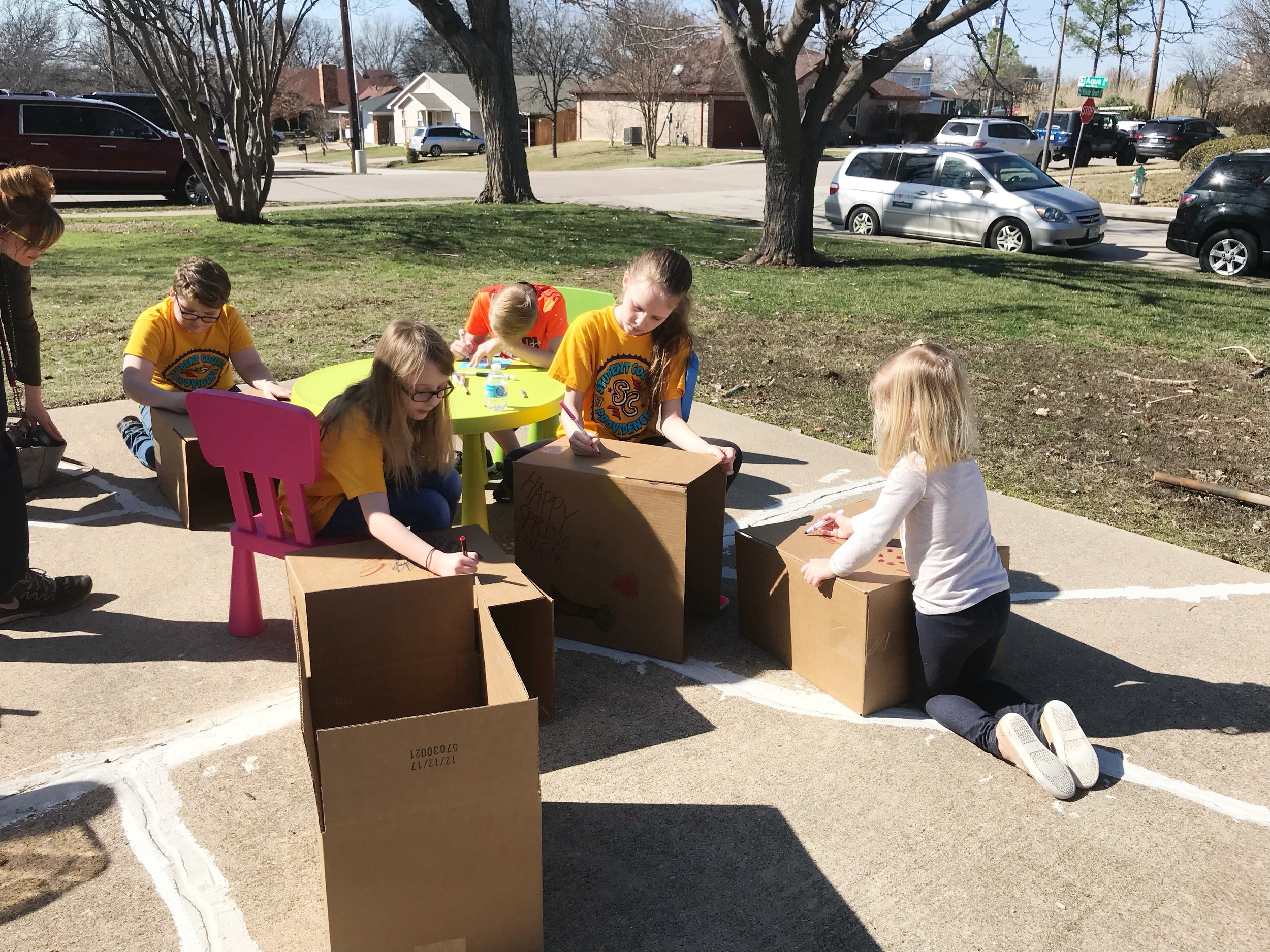 As a Student Council member, Sam was fortunate to be able to serve the community again, this time working with the organization LovePacs which provides food to families in need. This particular event was to prepare boxes of food, or Love Pacs, for Little Elm families over the upcoming spring break vacation. I went along as a chaperone, but the kids do most of the work. We had some great dads there, too, to help with the heavy lifting. LovePacs was very organized and even took the time to teach the kids a little bit about what LovePacs does and why they do it. The kids packed 100 boxes - all that they had - assembly-line style in just over an hour. Even Evie came along and ended up helping the "big girls" who were decorating the boxes with cheerful and colorful pictures and designs. It was a great learning opportunity for Sam and I'm looking forward to us working with LovePacs again next year.