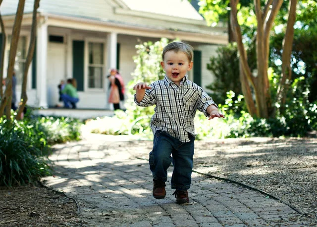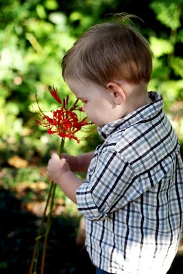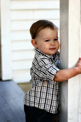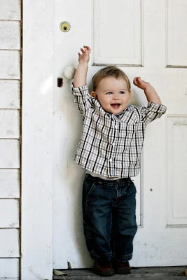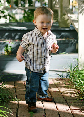 Brian and I giggled until we were in tears when we saw the top photo - he looks like he's posing for a runway show. Just a lucky shot, of course, but what a ham!! The last one made us laugh, too. I had just sat down on the ground and said "Come give Mama a hug". And so he did!