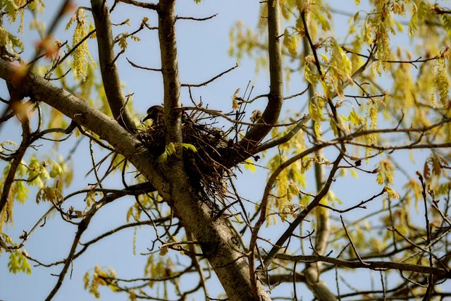 We've watched Mama and Daddy sit on the nest in our tree for a while now, and we finally have a baby. Just one, though, and boy is he big! Sam and the neighborhood kids have enjoyed checking-in on the birdies everyday I've been able to put my not-often-used zoom lens to good use!