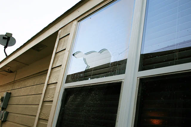 our bedroom window - we were fortunate, only the outer pane broke, so no glass in the bedroom