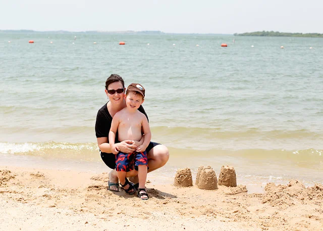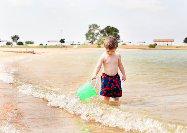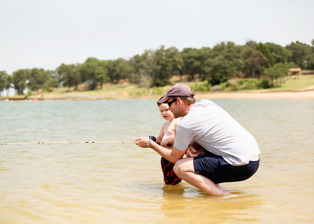 The closest we get to a beach in North Texas, anyway. Sam had a great time playing in the sand, wading through the water, and casting his fishing line with Daddy - all firsts for him. We brought a picnic lunch and enjoyed having the beach pretty much to ourselves. It was bright and sunny but not too awful hot because it was sooo windy, which worked out great. The water was the perfect temperature, too. We'll definitely be taking a trip back there soon!
