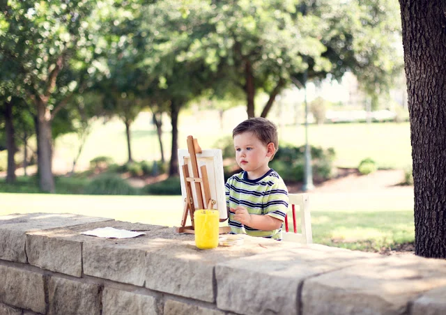 We met our Lens Baby friends at Frisco's Central Park for some painting fun. Sam had a great time creating his green masterpiece made by mixing yellow and blue on the canvas, "just like the book Little Blue and Little Yellow", he said. He looks like a natural - I wonder if he'll be a talented painter like Brian?