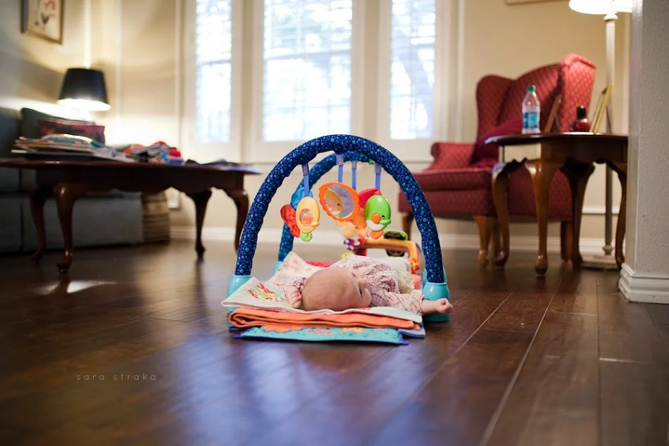 She ate at 10:00 last night, went straight to bed, and then I had to wake her at 6:30 this morning to eat again. That's 8 1/2 hours - whoa! I think she played so hard she wore herself out. More gym time for Evelyn, for sure!