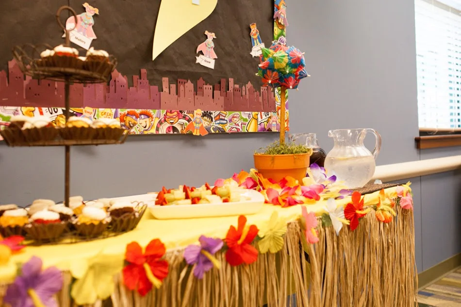 Sam and his classmates treated their moms to the nicest Mother's Day Tea this year. When we arrived, we were escorted to our chair by our kiddos where we found presents, special place settings, a beautiful flower lei to wear, and handmade centerpieces.
