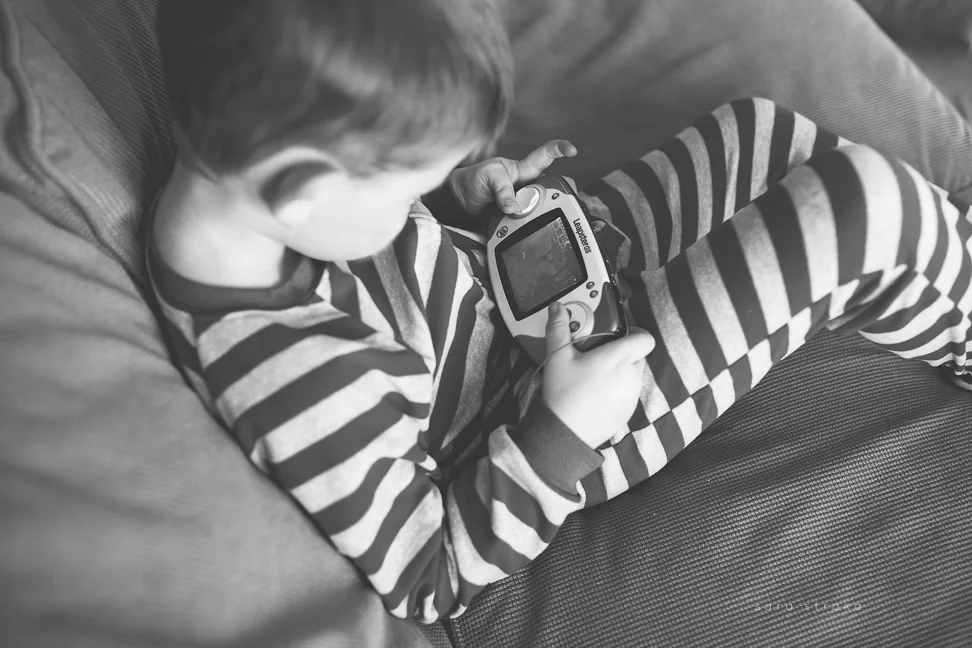 Just some pictures of my two, doing their thing after breakfast. Sam's playing Magic School Bus Dinosaurs on his new Leapster, and Evelyn's a tornado of activity, swirling all around him. Between preschool, playdates and running errands our mornings are often quite busy. Sometimes it's nice to just take it easy and play on the couch in our jammies.
