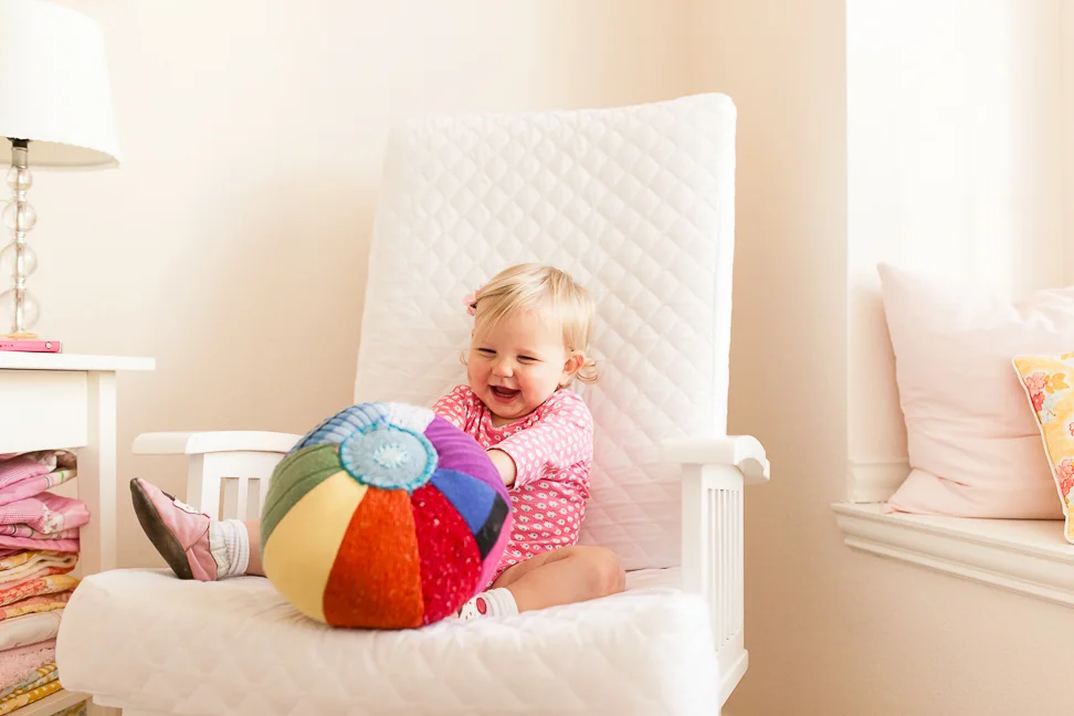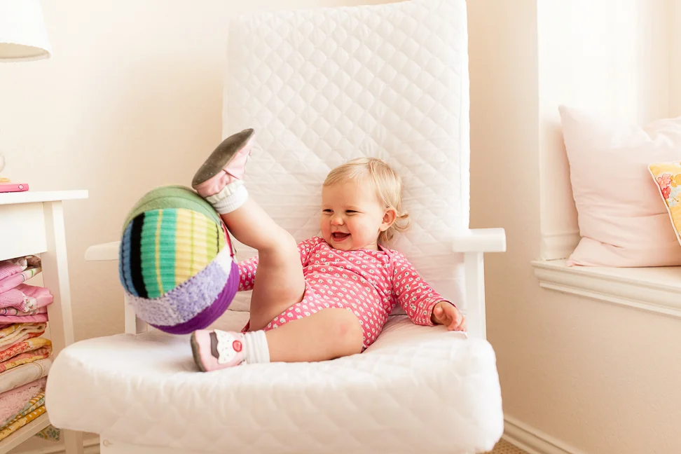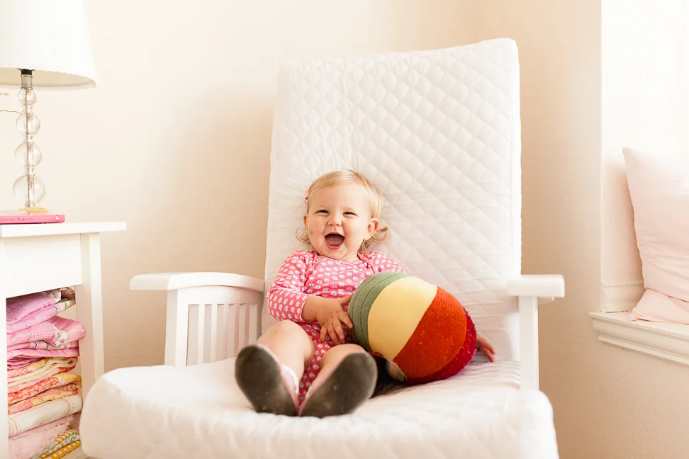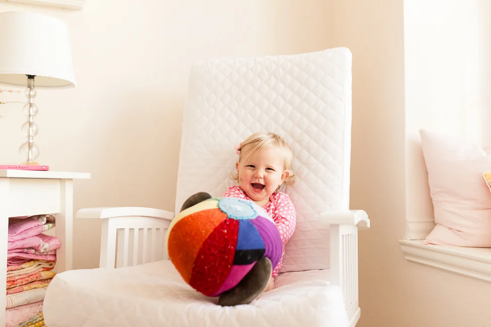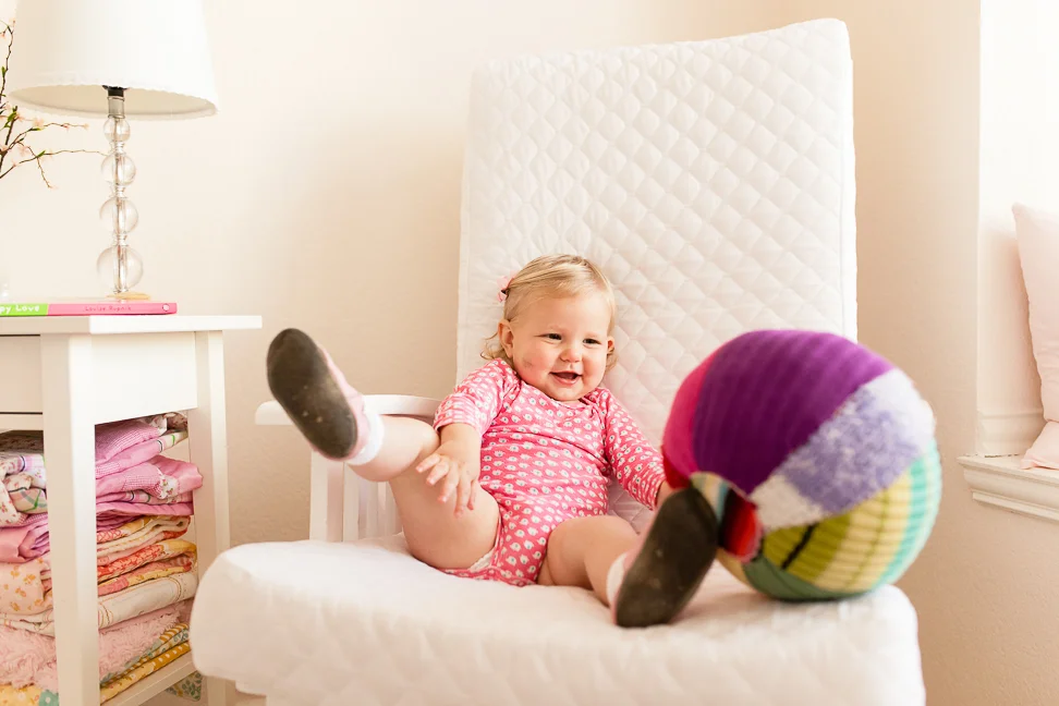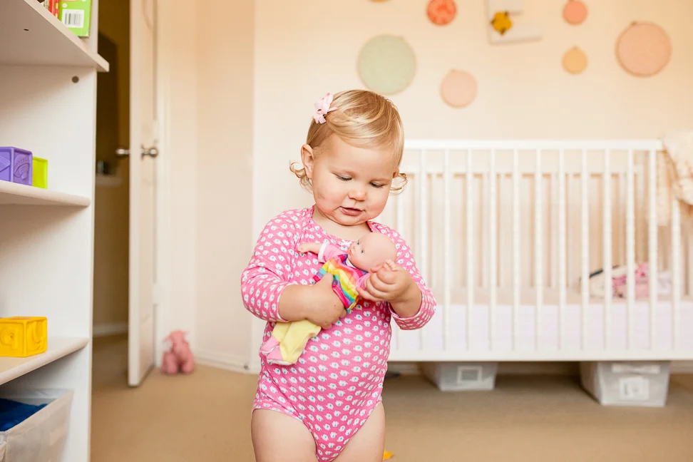 Just some snaps from a recent chilly, overcast morning. We've had a lot of those lately, it seems. She enjoyed her room that day, for sure. See that bruise? It's hard to miss; it's a big one. She fell against the kitchen cabinets, basically from a standing position. Not sure how it happened, but it left a nasty mark on that chubby widdle cheek.