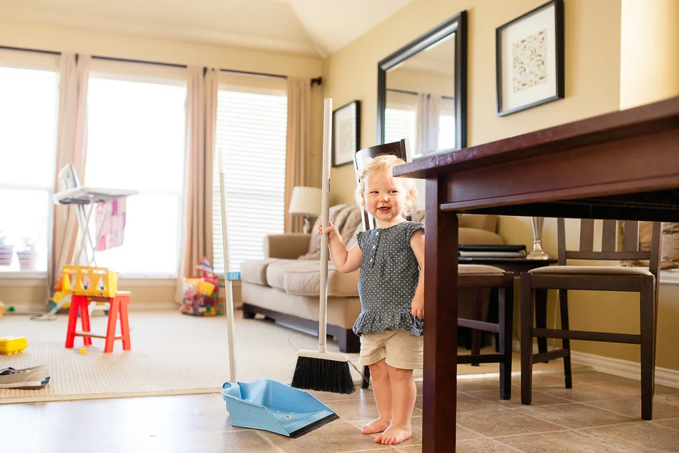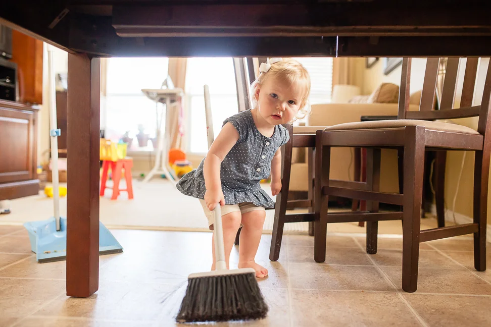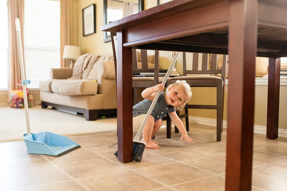This girl loves to sweep. She always looks so cute, trying to get all her Cheerios and cracker crumbs in the dust pan. She made a huge mess that day, as always, but she was happy and it kept her occupied for a bit while I finished a quilt. Such a sweet little helper.