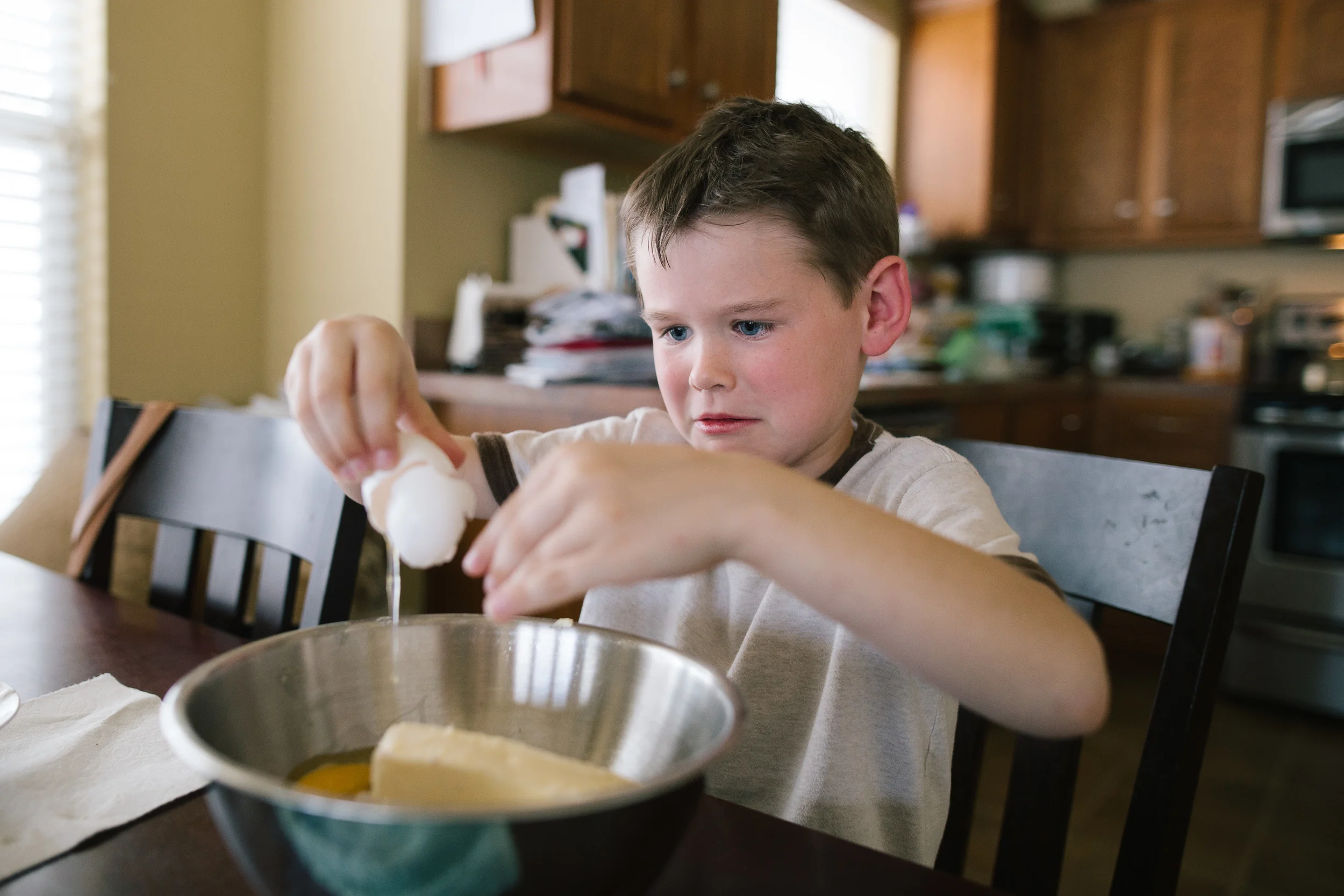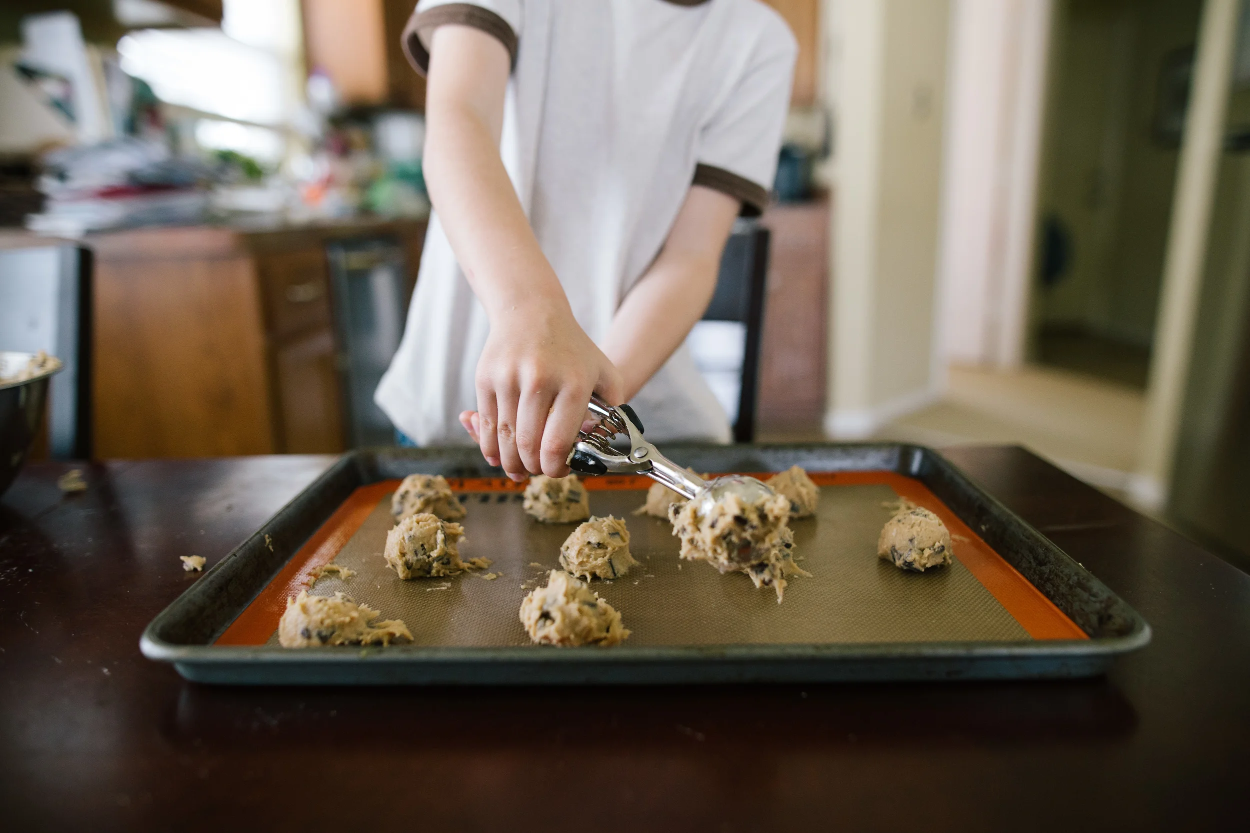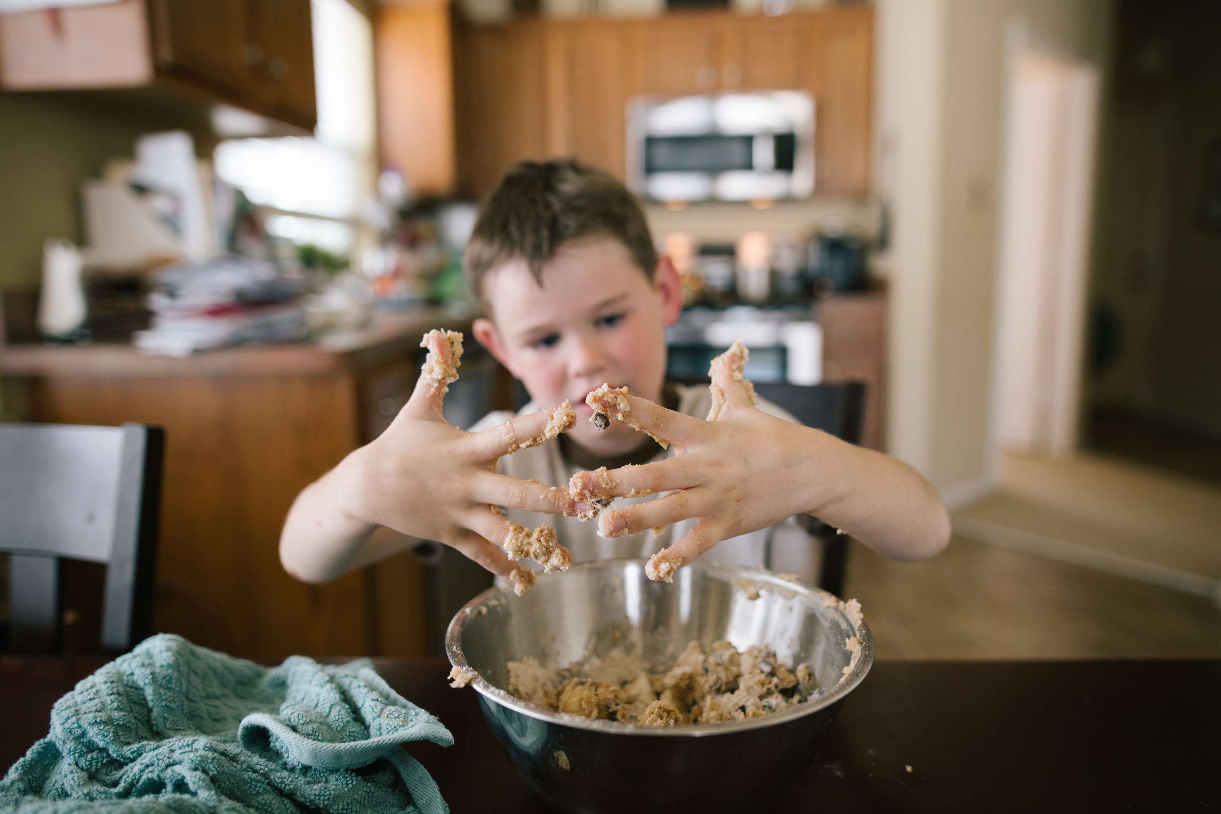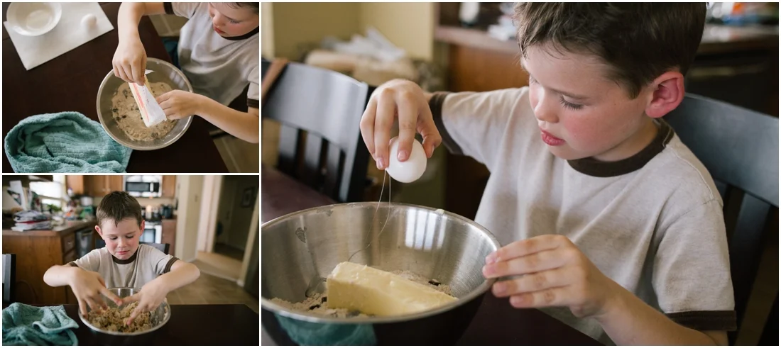 Sam came in from playing with friends and wanted cookies, asap. Lucky for him, I had a box of cookie mix in the pantry and he was up for baking!