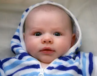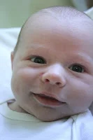 He asked me if Sam was talking and I said he was.  He tried to get him to talk but Sam would only glare at him and bury his head in my shoulder.  Dr. G. continued his exam and later tried to get Sam to talk again - asked him his name and how old he was.  Sam wasn't having any of it and gave him the cold-shoulder again.  Doc asked me - "Are you SURE he's talking?" - not in a joking way, but with genuine concern.  HA!!