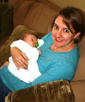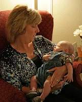 He's had several special visitors in the last week. First came cousins Hollie and Wayne...Hollie was so snuggly, Sam went right to sleep in her arms.