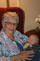 Granny Nell, but it wasn't Granny, it was Aunt Dell! Did you think you were seeing double Sam? Just wait till Aunt Bell comes for a visit! Unfortunately, the only picture I got of Aunt Dell was one of Puppy Sophie snuggling up to her, desperate for attention.